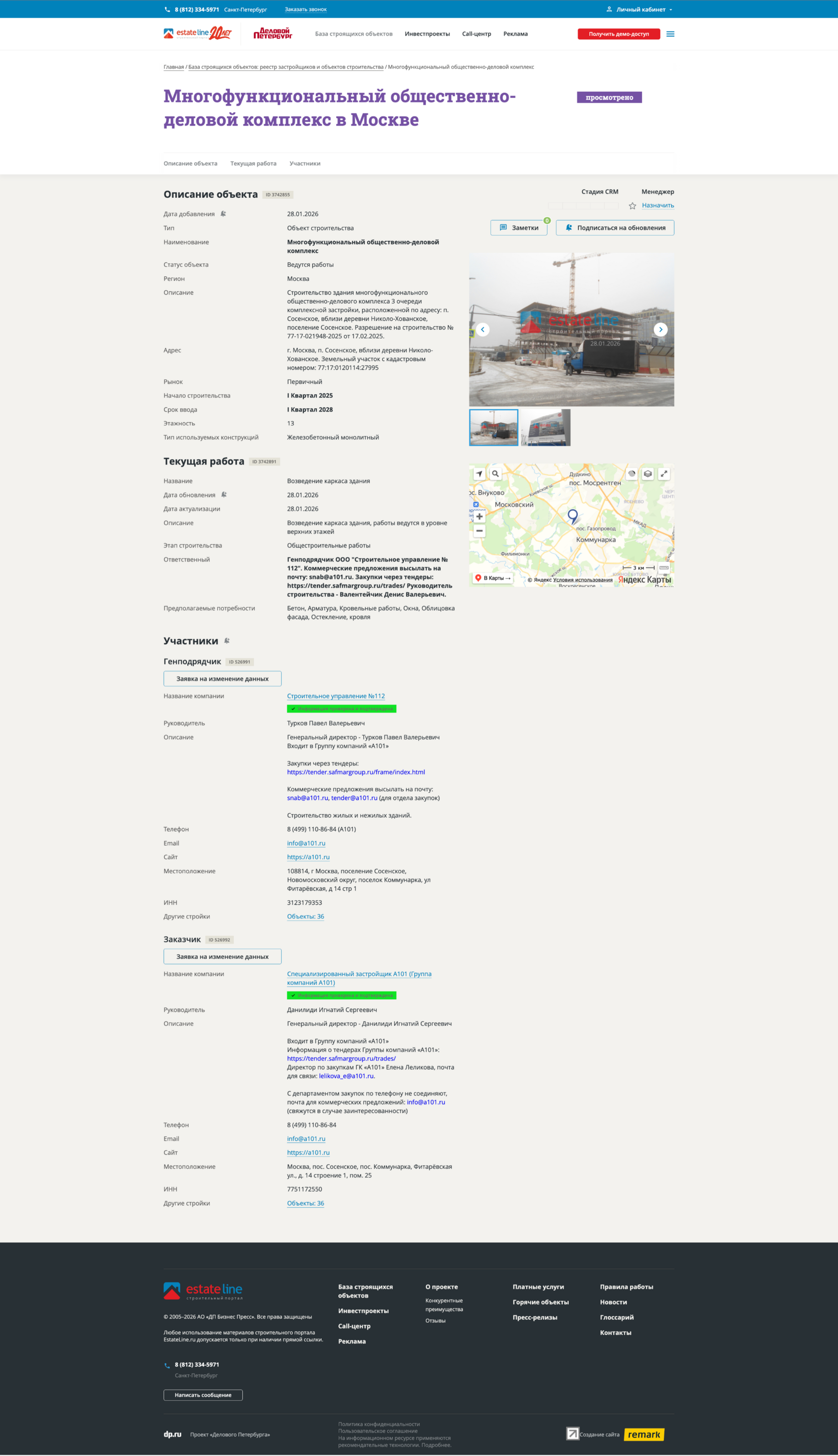 Хотелось бы оставить положительные отзывы о портале EstateLine.ru Уже на протяжении 3 - х лет работаем по базе данного портала, все контакты предоставлены верно, информация об объектах обновляется еженедельно. Заключили договора с подрядчиками, предоставленными порталом и ведем поставки строительных материалов.