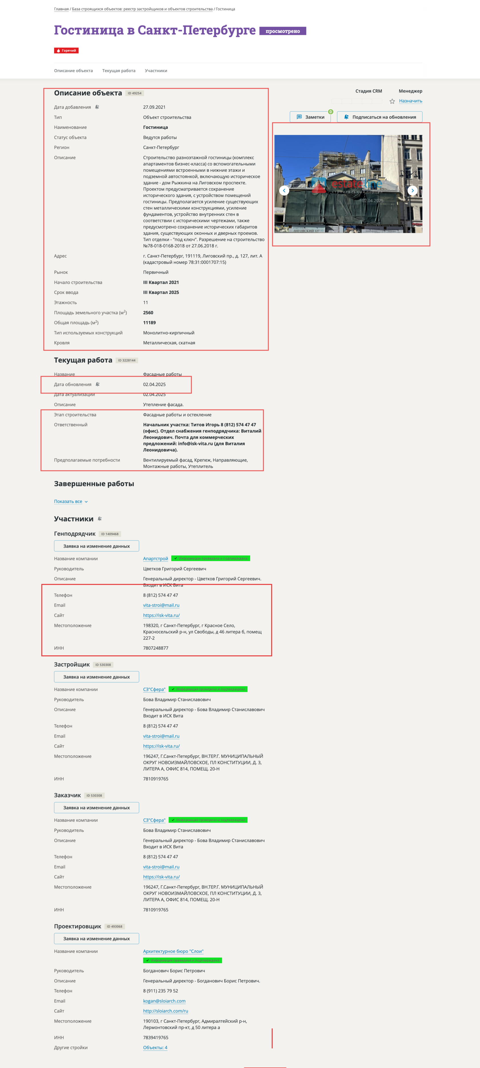 Отчеты о проделанной работе за неделю: новые объекты и обновленные работы, которые нашли наши агенты и проверил колл-центр.
